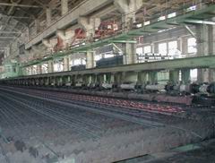 山东石横特殊钢厂地处盛产肥桃的肥城市,是一个正在崛起的地方企业。上半年,钢厂的校友与RAL 联系,打算生产棒材超级钢。非典刚刚过去,RAL的同志们即来到这里,签订了技术合同。吴迪教授率领课题组同志们几次来到石横,与石横的工程技术人员一起进行了控制冷却设备及生产设备的改进,采用了RAL开发的强力水冷装置,经过3次实验,已经轧制出400MPa级的超级钢带肋钢筋。预计年前可以生产这种超级钢产品2-3千吨。石横特殊钢厂400 MPa级超级钢带肋钢筋年产量预计可以达到3万吨。