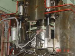 左图为:RAL科研人员在有色院进行调试,右图为:安装在轧机上的液压压下装置