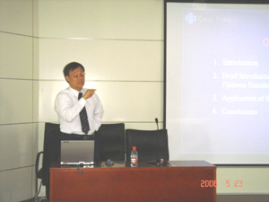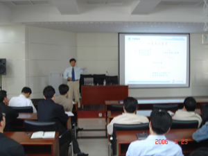 继2006年5月2-3日重点实验室主任刘相华、副主任吴迪、张殿华访问中钢后,台湾中钢技术研发处的胡毓仁博士、何灿颖副处长于2006年5月23日来东北大学国家重点实验室进行访问。在胡博士和何厂长做完专题报告后,就双方潜在的合作项目和共同感兴趣的研究课题与重点实验室的相关老师进行了广泛深入的探讨。