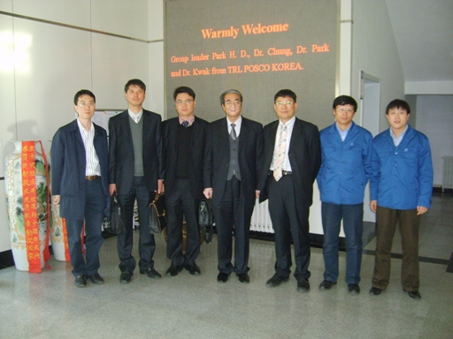 10月31日至11月2日,由PARK Hae Doo博士率领的韩国POSCO访问团一行4人在RAL与项目组成员进行了项目交流与访问。双方就正在执行的 “Development of Precise Temperature Prediction Model in Hot Rolling Process” 合作项目进行了讨论。主要内容包括GUI界面的设计、两种计算模型开发以及温度模型验证等。POSCO访问团对RAL阶段研究工作给予了肯定,并提出了下一步工作重点。参加项目讨论的RAL成员有李长生教授和博士研究生梅瑞斌以及硕士研究生朱亚平。