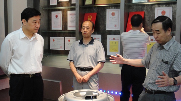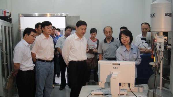 曾维书记、孙家学书记、赫冀成校长和王国栋院士、吴迪主任就产学研结合共同为地方经济服务的问题进行了交流。之后王院士带领曾维书记一行参观了实验室的实验厂房和展室,重点介绍了实验室的连续退火模拟试验机等实验设备。最后王国栋院士带领曾维书记一行参观了透射电镜。该透射电镜为2005年王国栋教授当选中国工程院院士时,王院士利用沈阳市市委和市政府颁发的院士基金所购买。王院士向市委市政府给予的资助表示感谢,并汇报说:这台国际上先进的材料检测和分析仪器,为我们今后的科研工作提供了助力,可以进行更高层次的研究工作,可以产出更多的科研成果。另外王国栋院士、吴迪主任还汇报了实验室与沈阳市科研院所和企业合作的情况,并表示今后会进一步加强这方面的合作,为沈阳市的科技进步和经济发展贡献实验室的最大力量。