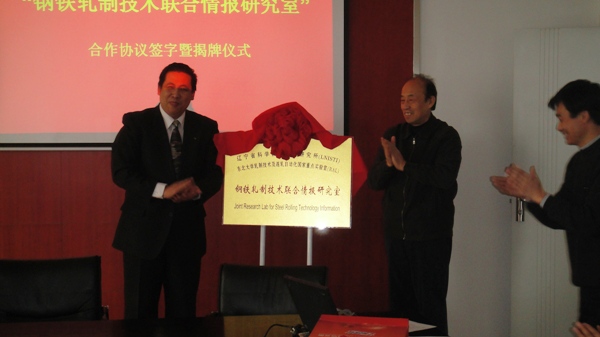 2010年2月8日下午,我室与辽宁省科学技术情报研究所建立“钢铁轧制技术联合情报研究室”的合作协议签字暨揭牌仪式在我室成功举行。