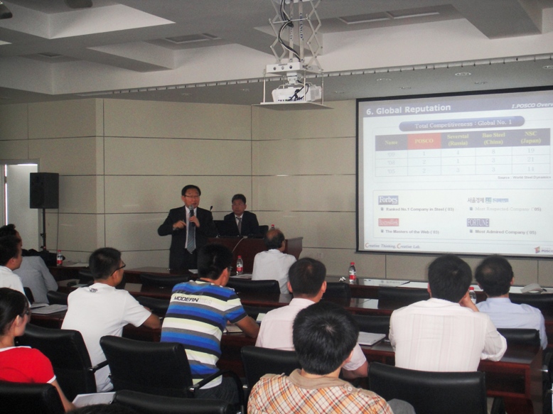 应轧制技术及连轧自动化国家重点实验室王国栋院士、吴迪主任邀请,韩国浦项钢铁公司技术研究院周雄龙院长一行于2010年9月13日来重点实验室进行交流访问。访问期间,周雄龙院长作了题为“Endless Rolling of Hot Striped Rolling and Products(热轧带钢无头轧制及产品)”的学术报告,实验室教师和学生参加了此次讲座。在报告中,周院长主要就浦项公司发展现状及展望、浦项热轧新技术开发及应用等方面为大家进行了讲解。