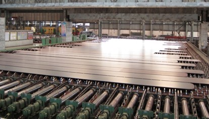 冷床上批量生产的钢板 钢板冷后板形