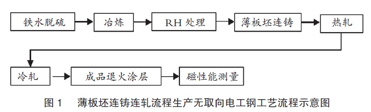 国内方面,继钢铁研究总院、武汉钢铁(集团)公司、马鞍山钢铁股份有限公司共同承担的“十五”国家科技攻关项目“薄板坯连铸连轧生产电工钢新技术研究”攻克了薄板坯连铸连轧无取向硅钢生产流程技术难关。典型牌号(50W540、50W600、50W800)无取向电工钢在马钢CSP线得以生产后,武钢、涟钢、唐钢、邯钢、通钢和包钢均有采用薄板坯连铸连轧流程生产无取向电工钢。薄板坯连铸连轧流程在国内电工钢生产领域得到迅速推广与发展,但无取向电工钢产品方面仍集中在中低牌号,尚未涉及高牌号无取向电工钢。