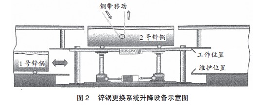 热镀锌锌锅设备是连续镀锌生产线中最重要的设备之一,锌锅更换设备的使用,使得在同一连续镀锌生产线内选择提供不同技术性能的合金涂料成为可能,德国某机械制造公司和新日铁合作,设计出一个带闭路循环的油冷升降系统。根据要处理的任务不同,该系统将其中一个待镀涂料的熔锌锅提升起来,并放置到生产线上。