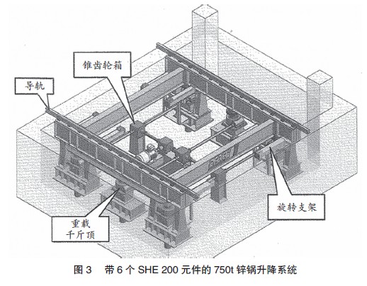 在恶劣环境下提升重载是该德国公司升降系统的独特之处。采用基于SHE系列多功能蜗轮螺旋千斤顶并配备闭路循环油冷的提升系统,可缩短钢铁厂镀锌线停机时间。经过试验验证合格的系统,它能够灵活地将重达750t 熔锌锅提高2000mm进入生产线,目前已在全球使用(见图3)。