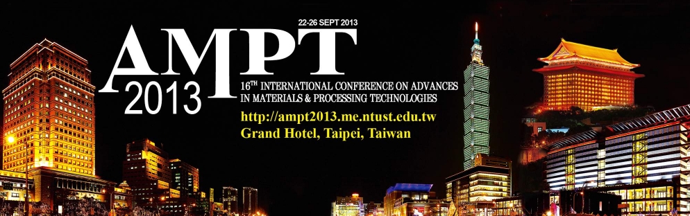 On behalf of the Organizing Committee, we are pleased to welcome you to the 16th International Conference on “Advances in Materials and Processing Technologies (AMPT 2013)”. The conference will be held at the Grand Hotel in Taipei, Taiwan, Sep. 22-26, 2013, and organized by the National Taiwan University of Science and Technology and the SME, Taipei Chapter.