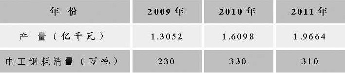 表2 近3年我国中小型电机产量和消耗电工钢情况