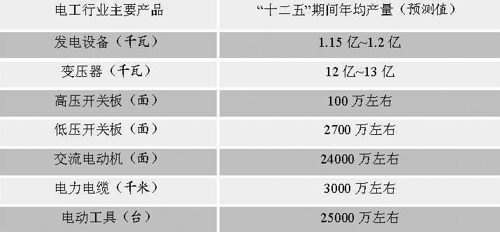 表3 “十二五”期间我国电工行业主要产品的预测产量