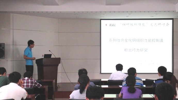 博士研究生胡军同学以“系列微合金化钢组织性能控制及析出行为研究”为题从Nb-Ti微合金化热轧贝氏体带钢组织性能研究、Ti-Si微合金化热轧双相带钢组织性能研究、V对高Ti热轧带钢组织性能的影响、V-N微合金化热轧中、厚规格板材组织性能控制、V(C,N)析出物对V-N钢焊接粗晶区组织性能影响、纳米晶钢块体材料制备技术及基础理论研究六个方面结合发表的论文细致的介绍了自己在基础研究方面取得的最新进展以及期刊审稿人的评价,并介绍了下一步的研究工作计划,包括纳米钢的制备等。