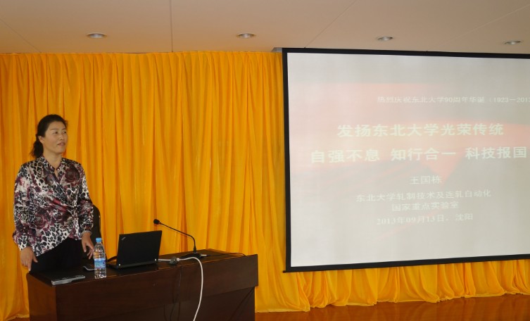 2013年9月 13日,为庆祝东北大学迎来建校90周年华诞,中国工程院王国栋院士在知行楼634报告厅为材料与冶金学院师生作了题为“自强不息 知行合一 科技报国”的学术报告。材料与冶金学院及RAL重点实验室近150名师生聆听了报告,报告会由材料与冶金学院蒋敏副院长主持。