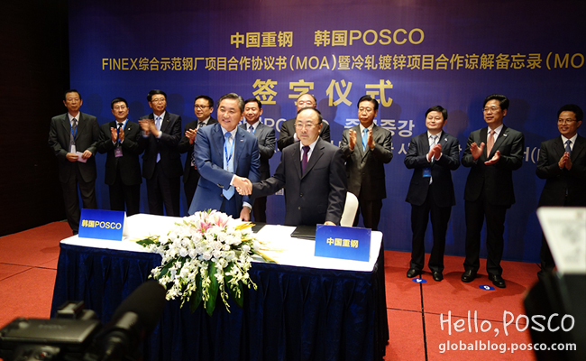 At the signing ceremony, POSCO CEO Chung Joonyang and Chongqing Mayor Huang Qifan were in attendance, with the MOA being signed by POSCO President Kim Junsik and Chongqing Iron and Steel Company President Zhu Jianpai.