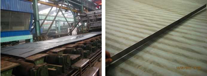 淬火机升级改造后,通过对辊式淬火机设备参数及工艺参数的高精度调节和优化,成功开发了系列高等级低合金高强度调质品种,其中包括6~10mm极限薄规格高强工程机械用钢、耐磨钢等,淬火后钢板平直度指标优异、性能良好。相关调质钢板照片如图3所示。