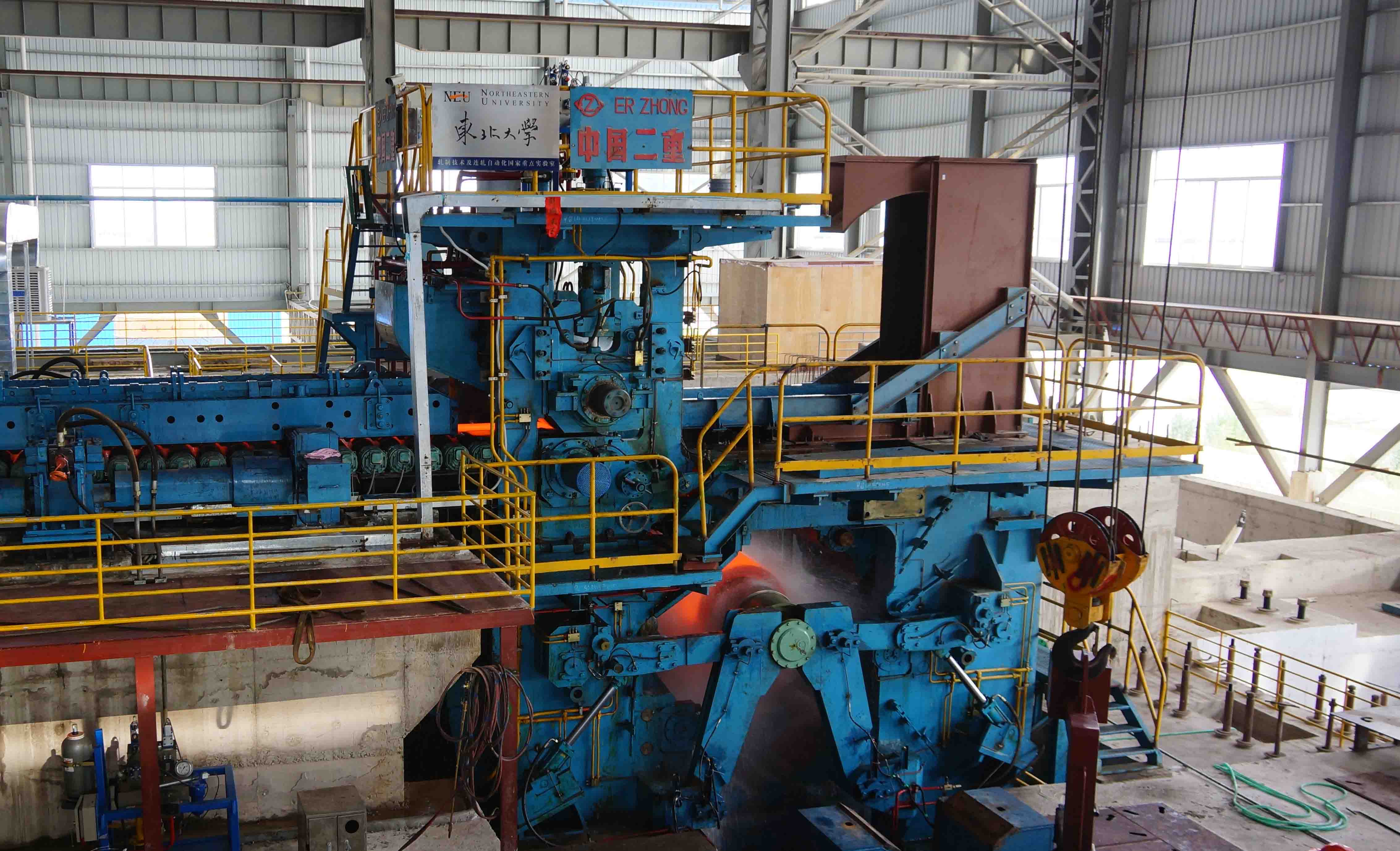 该生产线粗轧区配置有1个立辊轧机和1架2辊平辊轧机,在中间辊道配置有热卷箱、飞剪,精轧机由1架立辊和8架四辊平辊轧机组成,卷取区配有地下卷取机。自动化系统配备有两级计算机控制系统,基础自动化采用SIEMENS PLC,过程计算机采用DELL服务器,该项目是RAL承担的首套不锈钢热连轧生产线的全线自动化项目,主要生产厚度为2.4~1.8mm的不锈钢板带。