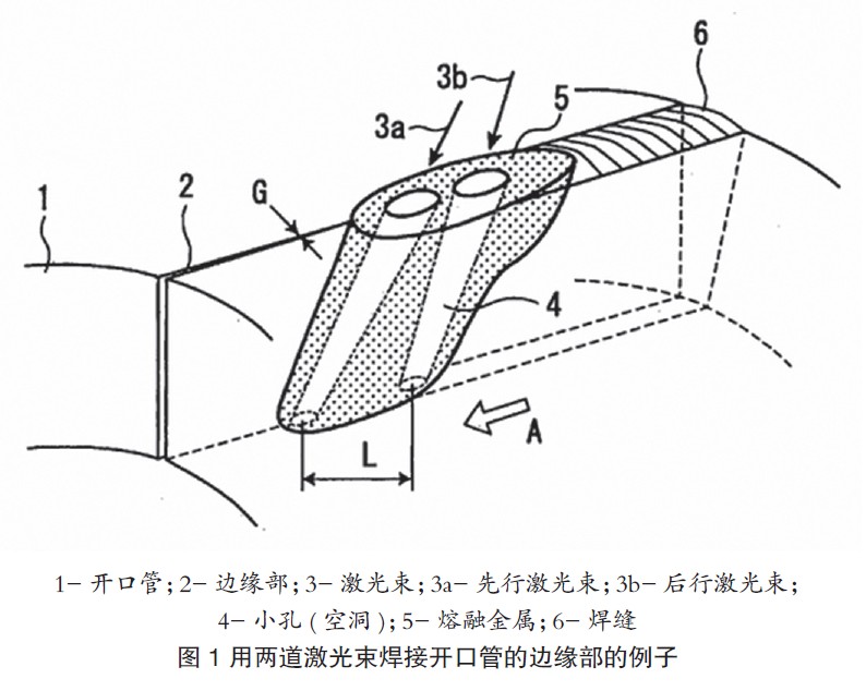 如果JFE公司研发的激光焊接钢管制造工艺技术与气体保护焊、添加填充金属等以往公知的技术组合也会有效果。这样的复合焊接的技术不仅适用于焊接钢管的制造,还适用于厚钢板的焊接。如以上所述,根据本技术,在制造激光焊接钢管时适当地保证光斑直径,并适当排列两道激光束,并且控制激光束的入射角等激光焊接的条件,从而能够防止飞溅物的产生,能够抑制焊接部的下陷、不满,并且能够不降低焊接效率而得到质量良好的焊接部,能够高合格率地稳定制造激光焊接钢管。该技术生产的激光焊接钢管能发挥激光焊接的优点,其焊缝的低温韧性、耐腐蚀性优良,因此利用此技术生产的油井管、管线管适用于在寒冷地区、腐蚀环境下使用。