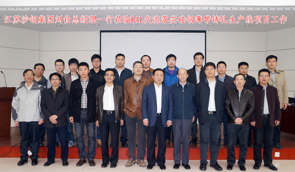 3月28-29日,江苏沙钢集团有限公司总经理刘俭、副总经理施一新、项目办主任王卫东、冷轧厂厂长戴蔚兵、研究院李化龙博士、王哲博士、马建超博士一行莅临RAL,交流落实沙钢“高品质特殊钢新型短流程生产线技术开发与应用示范”项目。王国栋院士、刘振宇副主任、张晓明教授、许云波教授、袁国副教授、邱以清副教授、曹光明副教授、李海军副教授、刘海涛副教授、李成刚工程师等项目组成员参加了会议。