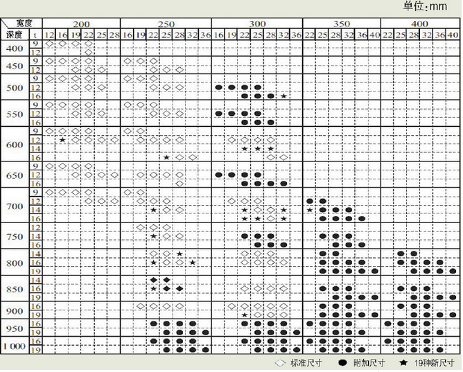 在此期间,JFE生产出大量的高品质节约型钢材,如利用热机械控轧工艺(TMCP)生产的同时具有优越焊接性能和高强度的HBL-JH325/355宽厚翼H型钢,以及具有高温强度的建筑结构用JFE-FR耐火钢等。1989年11月,JFE开始供应Super Hislend大截面定外形尺寸H型钢,其腹板深度和翼缘宽度按产品系列固定并标准化。该热轧H型钢作为焊接H型钢的替代品得到广泛应用。为满足各种需求,JFE近期又为该产品增加了19种尺寸,使该产品拥有42个系列和311种尺寸。JFE大截面定外形尺寸H型钢规格见附表。