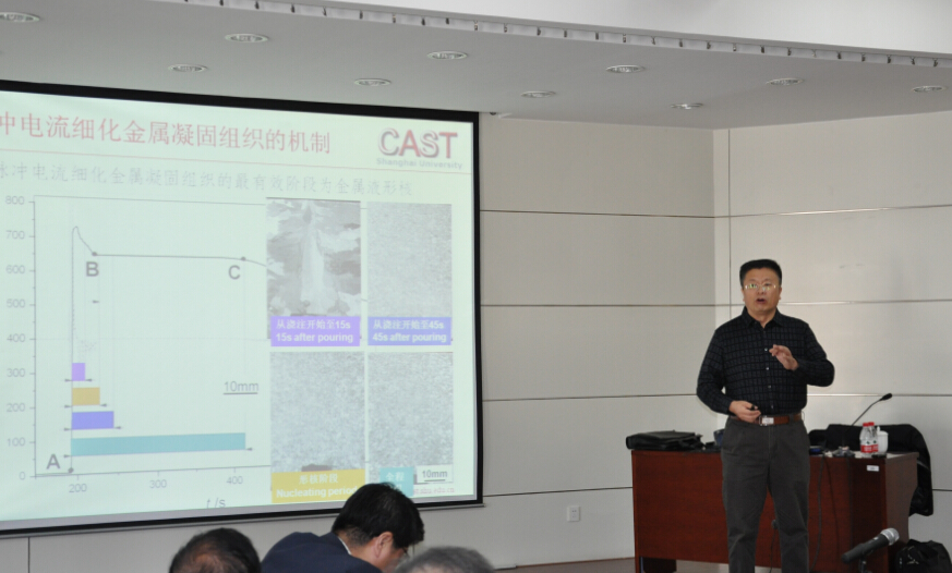 翟启杰教授详细介绍了他和他的团队所开发的原创性技术——脉冲电流及脉冲磁致振荡凝固细晶技术,科学地阐述了脉冲电流细化金属凝固组织的机制和规律,并以大量的实验数据证明了该技术在细化凝固组织、消除偏析、提高铸坯质量方面的独特效果。翟教授特别描述了从基础研究开始,在实验室研究、中试、产业化的系统创新中,所遇到的各种酸甜苦辣和克服困难、最终走向成功的艰辛历程。翟教授严谨治学、勇于创新、求真务实的精神为师生们上了一堂生动的学风课。