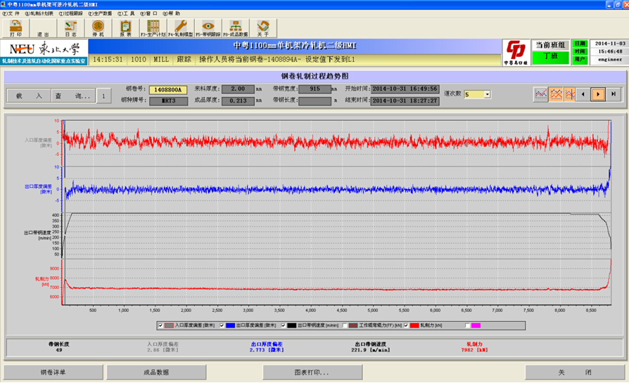 2014年10月,由我室孙杰博士和陈树宗(博士后)承担的广东中山中粤1100mm单机架UCM可逆冷轧机AGC升级改造项目顺利通过中山中粤马口铁工业有限公司的验收,并已成功投入生产。该项目的完成是我室单机架冷轧薄板领域的又一标志性成果,树立了技术改造转型发展、增加效益的样板。
