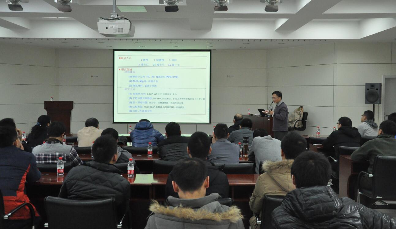 杜勇教授作了题为“铝合金的热力学、热物理性能数据库及其微结构表征”及“硬质合金及耐磨涂层的集成计算材料工程”的学术报告,他从材料热力学及动力学角度,在材料设计及材料微观分析方面结合自身多年研究,为大家详细介绍了多元多相合金凝固及热处理过程微结构演变的定量研究,对于我室在硬质合金及铝合金领域拓展及科研工作具有极大的指导意义。