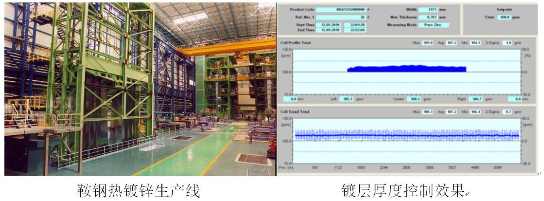 目前,快速加热和快速冷却技术正在积极与企业合作,现已完成工业化连续退火生产线的方案设计,将尽快实现工业化应用。镀层质量控制系统在鞍钢股份公司4#镀锌线实现工业化应用,在提高产品质量、降低生产成本方面具有显著的效果。该项目通过中国钢协组织的科技成果鉴定,2015年11月“热镀锌带钢镀层质量控制核心技术研发与工业应用”项目获得冶金科学技术二等奖。