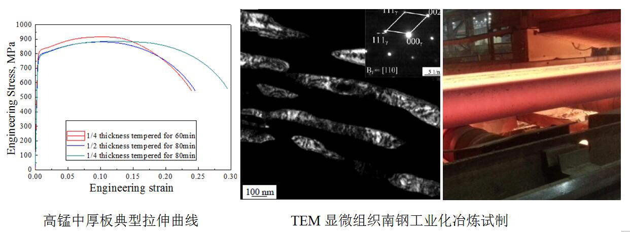 2015年度,方向研究人员依托国家863计划重大课题“海洋平台用高锰高强韧性中厚板及钛/钢复合板研究与生产技术开发”,协同鞍钢、南钢等企业针对高锰海洋平台用中厚板的合金成分设计、强韧化机理、控轧控冷及热处理工艺理论开展相关研究工作,取得如下重要进展: