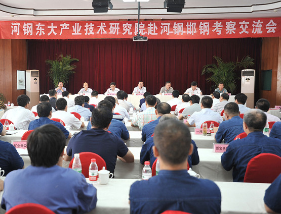 以东北大学副校长、河钢东大产业技术研究院理事汪晋宽为首的东北大学团队,以中国工程院院士、河钢东大产业技术研究院院长王国栋为首的河钢东大产业技术研究院团队,以河钢钢研院长、河钢东大产业技术研究院理事李建新为首的河钢钢研团队,群英荟萃,发挥优势技术力量,共同探讨河钢邯钢产线需要解决的问题,促进产品升级和结构调整。