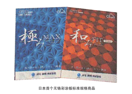 JFE钢板公司日前宣布,该公司开发出不含六价铬的高耐蚀性无铬彩涂钢板,并已经作为日本首个标准规格商品的划时代新品牌“JCraft”开始正式发售。JFE钢铁公司千叶工厂和玉岛工厂已从7月开始正式组织生产,同时,以建立新品牌为契机,对色调进行了统一,将标准色由原来的129色集约为61色,便于用户选择,同时减少库存负担。