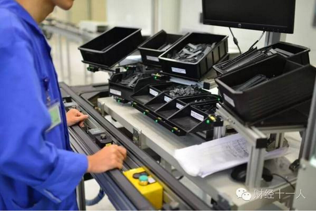 ▲西门子成都工厂的自动防呆系统 , 零件盒的指示灯能够提示工人按需安装
