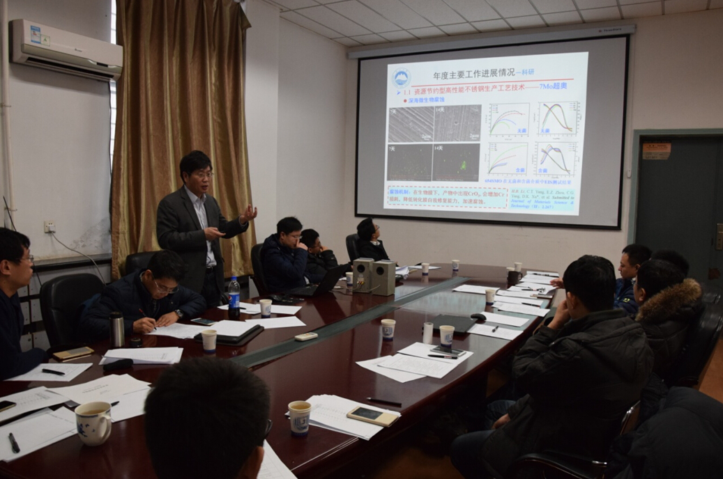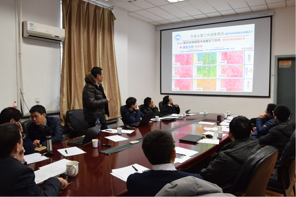 2011钢铁共性技术协同创新中心——先进冶炼、连铸工艺与装备技术方向于2016年12月27日在冶金馆207室对本方向教师进行了年终考评汇报。朱苗勇教授任会场考评组长。本次汇报包括本方向15名教师,重点围绕高效低成本洁净钢冶炼、高品质连铸坯生产工艺与装备、特种冶金工艺与装备、炼钢原料及二次资源高效利用等四大主题,结合各自参与的实际科研项目,详细介绍了本年度工作和所取得的成绩,与会教师就相关问题和研究热点进行了深入讨论。