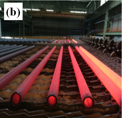 (2)研发了热轧无缝钢管在线控制冷却成套工业装备,建立基于非对称冷却圆形断面换热系数模型,开发了基于钢管产线特点的多流程控制技术,满足钢管生产要求节奏紧、控制精度高的在线控制需求,实现了TMCP技术在热轧无缝钢管中的工业应用。