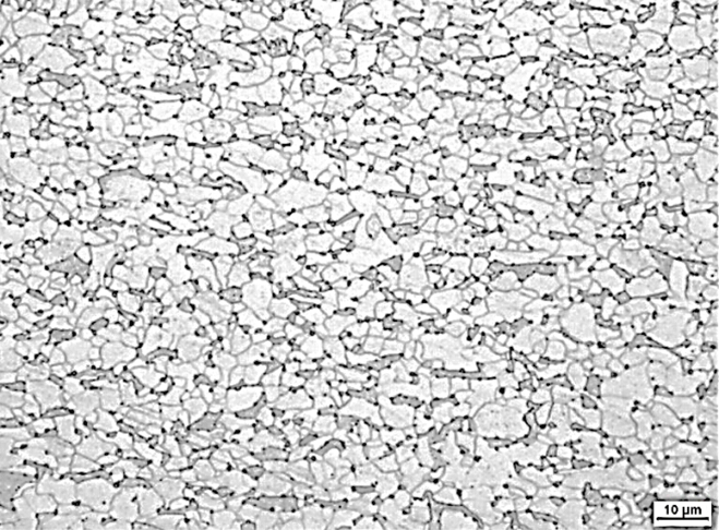 ESP线生产热轧薄规格双相钢具有极大挑战,产品强度与延伸率的合理匹配、组织均匀性控制是产品成功开发的关键所在。2016年度,方向研究人员突破了关键技术瓶颈,在ESP线上成功开发DP590热轧双相钢,厚度规格≤1.8mm,产品性能稳定。取得了如下创新和技术进展:
