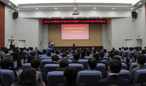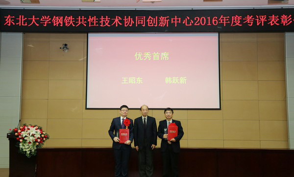 1月7日上午,东北大学钢铁共性技术协同创新中心在主楼822室举行了2016年度考评表彰会,校党委书记熊晓梅,中国工程院院士王国栋,校长助理王国仁、刘常升以及相关部门领导出席了会议并为获奖集体和个人颁奖。