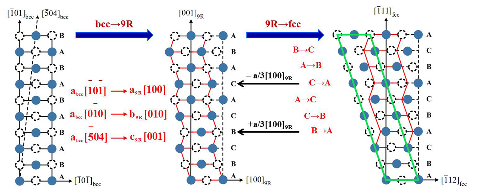 (1)研究纳米富Cu相析出过程的晶体结构演化规律,创新性发现了非孪晶9R结构,并在一个析出相中观察到了9R结构部分退孪晶化,转变为fct结构。提出了bcc→9R→孪晶fcc/fct→fcc演变序列并建立了相应的晶体学模型。该研究成果完善了纳米富Cu相晶体结构演化理论,并为Cu析出强化机制的确定提供重要理论依据。