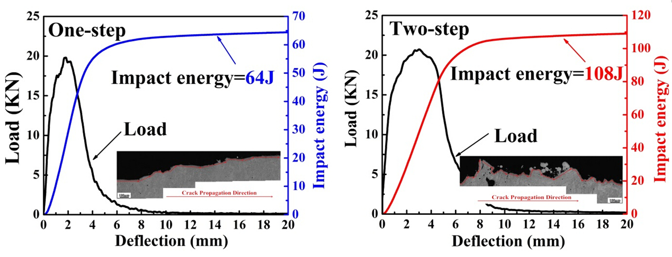 先进冷轧、热处理和涂镀工艺与装备技术方向邹英博士基于奥氏体逆相变的C、Mn配分机理,通过控制轧制与两步ART处理调控残余奥氏体的含量及稳定性,制备了大量亚稳态残余奥氏体,创新性的提出了中锰钢中亚稳残余奥氏体的增韧行为。研究发现,与稳定的薄膜状残余奥氏体不同,断口附近亚稳态残余奥氏体在冲击变形过程中可以发生积极的TRIP效应,有效的缓解应力集中,抑制微裂纹的萌生,从而提高裂纹形成功;在裂纹扩展过程中,裂纹高能尖端触发的TRIP效应可以释放裂纹尖端能量,从而钝化裂纹扩展能力,显著提高低温吸收功。