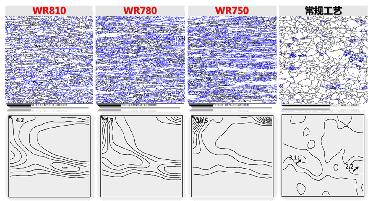 ▲新工艺与常规工艺的EBSD和织构对比