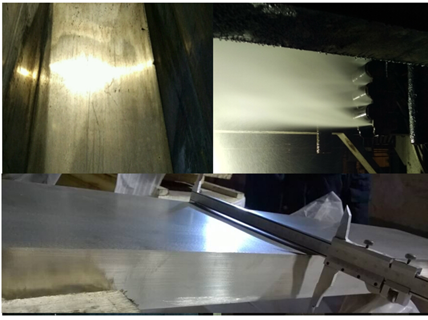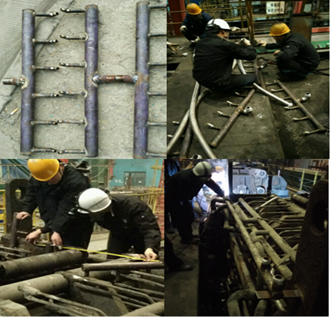 ▲舞钢内凸型曲面结晶器与铸坯角部晶粒超细化控冷装置现场组装