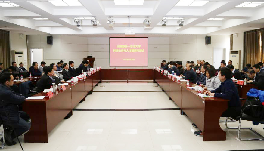 2月10日“河钢邯钢—东北大学科技合作与人才培养对接会”在东北大学举行。河钢邯钢董事长郭景瑞、总经理许斌一行9人到东北大学开展科技合作和人才培养方面的对接交流。东北大学副校长汪晋宽、河钢东大产业技术研究院院长王国栋院士以及学校相关部处领导出席会议,河钢东大产业技术研究院副院长王昭东教授主持会议。