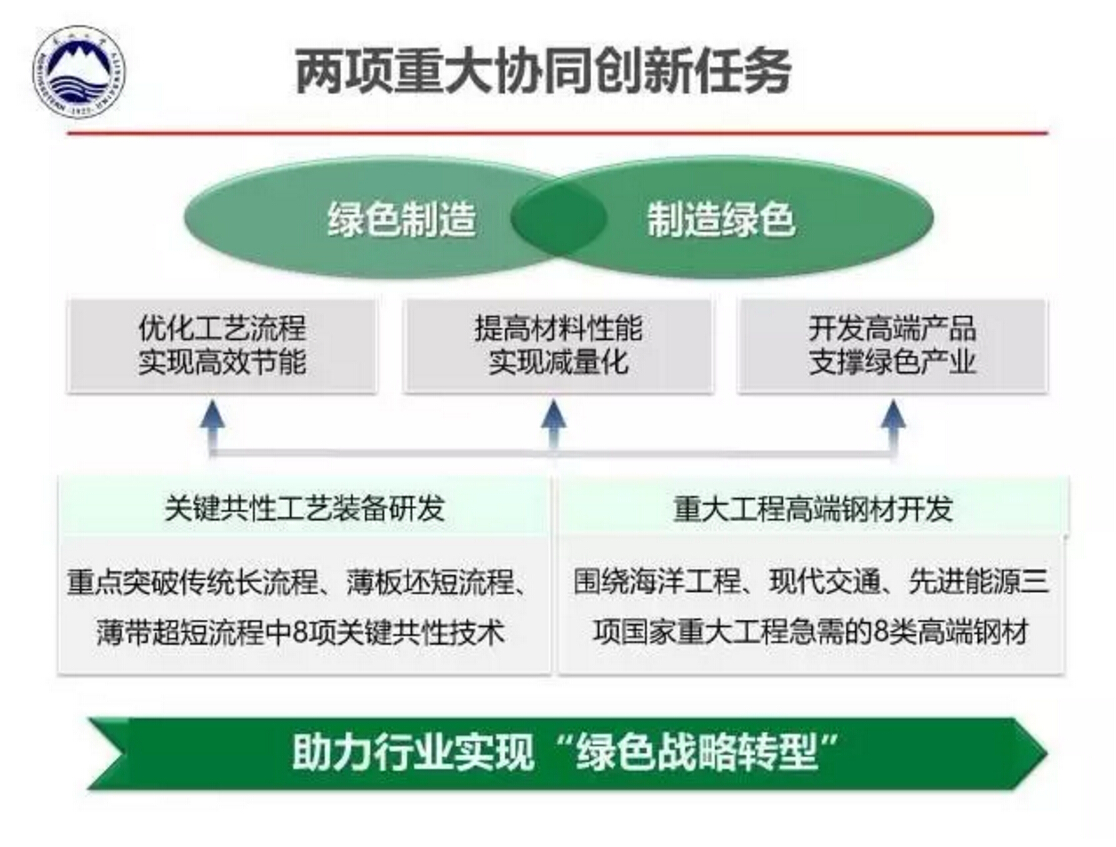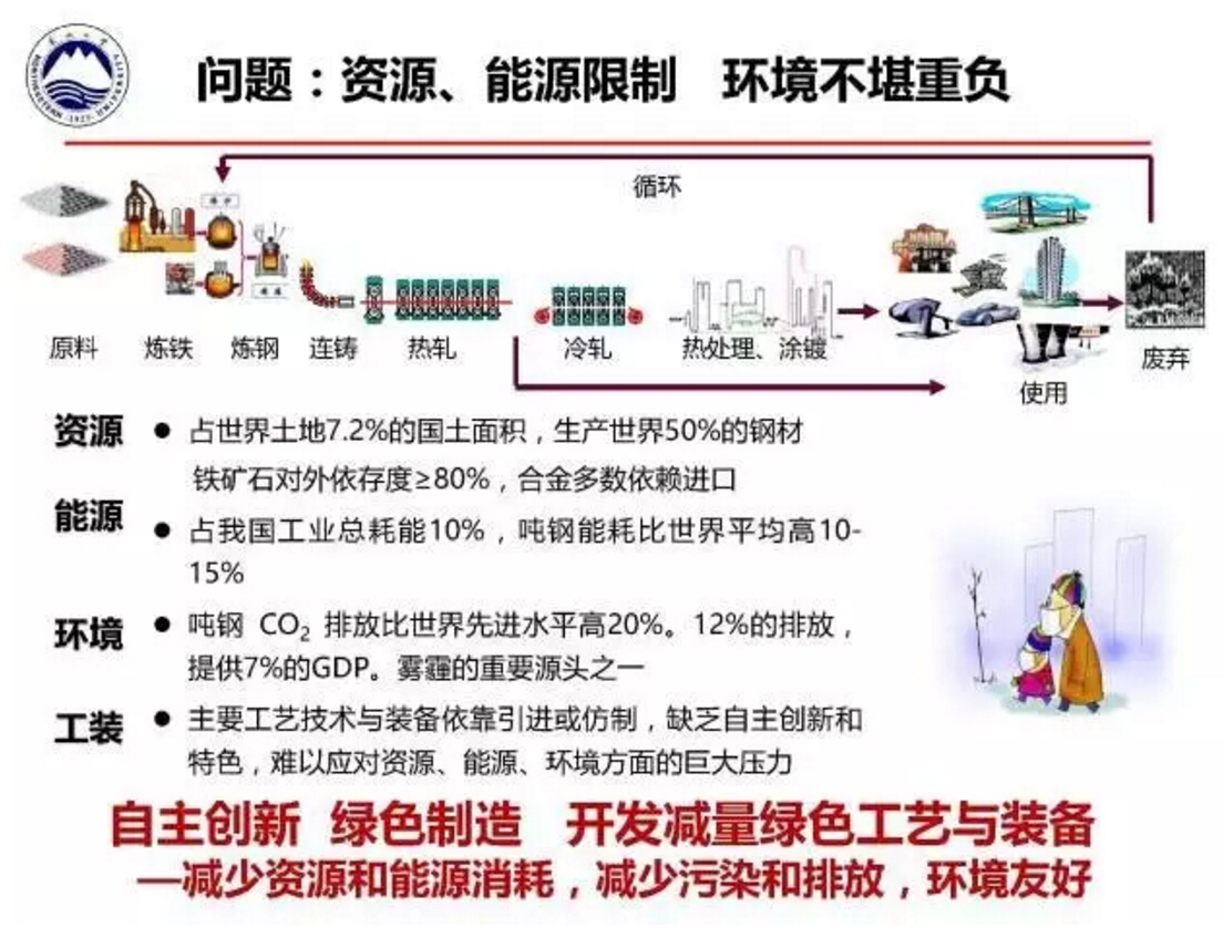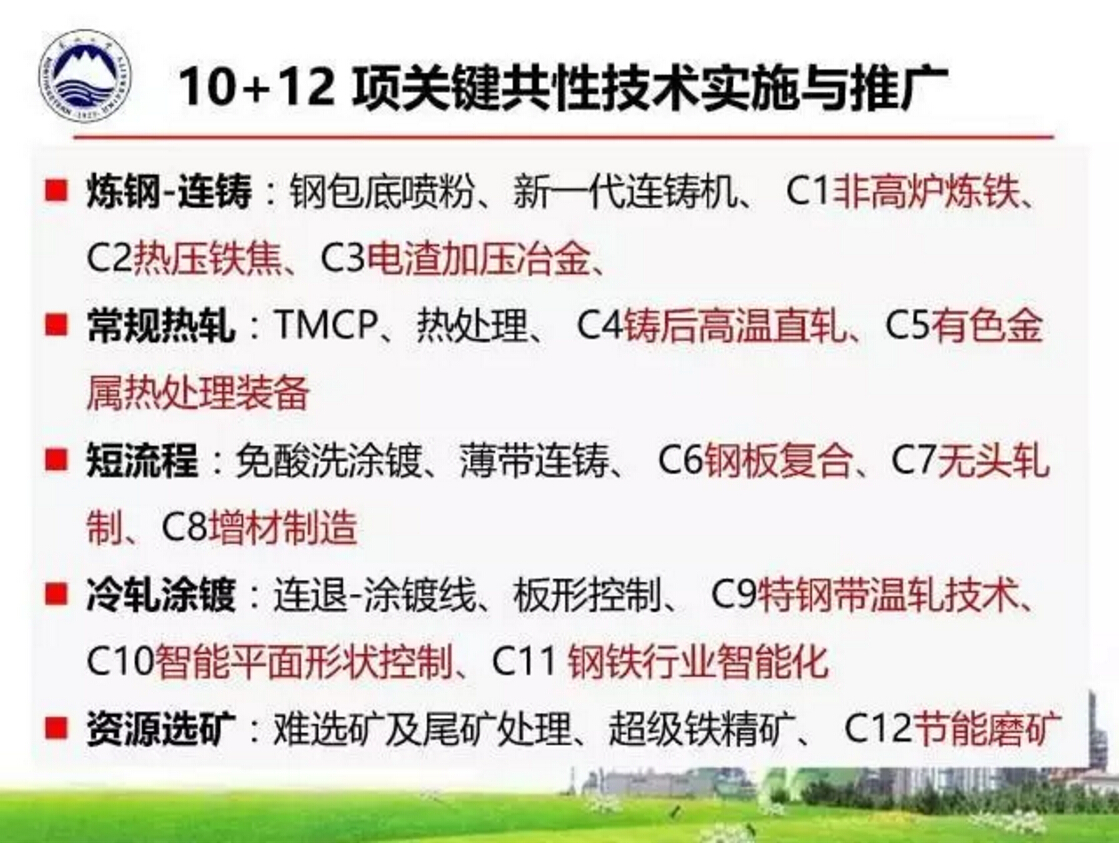 王国栋指出,当前我国钢铁工业存在产品结构失衡,高端产品供给能力不足,过程与产品稳定性、均匀性、一致性不足等问题,因此急需通过自主创新,开发高性能、绿色化钢铁材料,急需通过创新驱动着力开发与应用绿色化、智能化技术,实现信息深度感知、智慧优化决策以及精确协调控制,这样才能开发出减量化、高性能、耐腐蚀、无污染、长寿命、易循环的材料。为此,由东北大学和北京科技大学牵头的“2011钢铁共性技术协同创新中心”目前已经提炼出从采矿选矿到钢铁产品生产等覆盖全流程的十项关键共性技术。