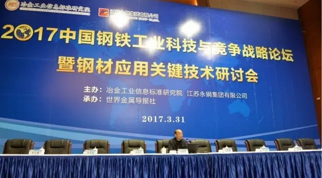 3月31日,由冶金工业信息标准研究院和江苏永钢集团有限公司共同主办的“2017中国钢铁工业科技与竞争战略论坛暨钢材应用关键技术研讨会”在江苏张家港成功召开。来自钢铁企业和下游用户的代表齐聚一堂,共同探讨钢铁产业链延伸以及下游重点行业钢材应用技术,以上下游供需衔接为出发点助推钢铁行业转型升级。本次会议特邀中国工程院院士王国栋作了题为“协同创新 攻克关键共性技术 加速提升钢铁行业核心竞争力”的精彩报告。