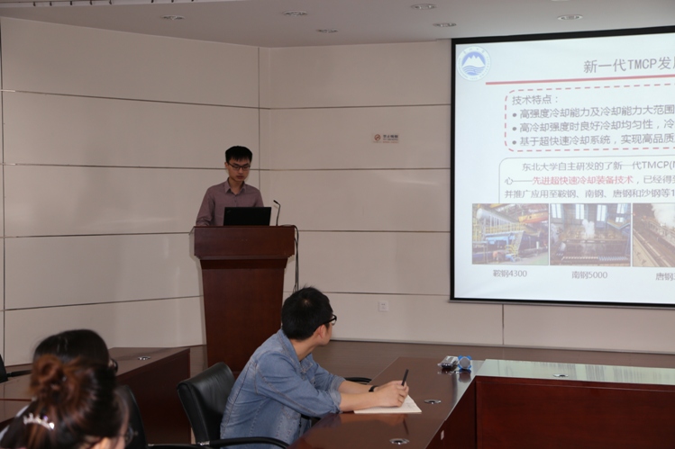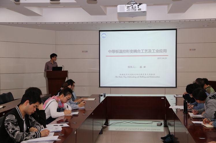 2017年4月28日上午,来自“2011钢铁共性技术协同创新中心-先进常规流程热轧工艺与装备技术方向”的张田博士生在RAL 411学术报告厅作了题为“中厚板温控形变耦合工艺及工业应用”的学术报告,会议由贾涛老师主持。