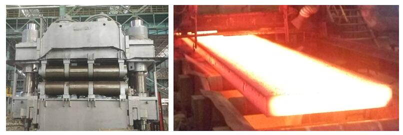 厚板产品广泛应用于海洋工程、能源电力、石油化工、机械制造、国防军工等领域重大装备的制造,具有重要的战略意义和经济价值,目前我国厚板年产量已超过750万吨。连铸坯重压下技术通过在凝固末端与完全凝固后施加大压下量(≥10%的变形量),并充分利用铸坯内外温差超过500℃的温度梯度,实现变形量向铸坯心部的高效传递,从而有效焊合凝固缩孔、改善中心疏松,全面提升铸坯致密度与均质度,其不仅能大幅降低厚板产品的生产成本与吨钢能耗,同时可显著提高产品性能,具有良好的应用前景。
