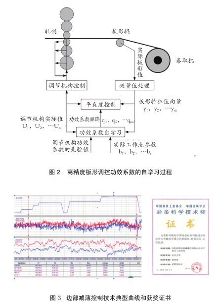 在边部减薄控制技术方面,在鞍钢1500mm硅钢冷轧机将UCM改造为单端锥度工作辊窜辊功能UCMW冷连轧机。在此基础上,又开发出工作辊窜辊、速度、弯辊力等多规格带钢产品的边部减薄工艺控制模型和自适应自动控制系统,对热轧来料凸度质量要求大幅降低,边部减薄控制进一步提高,2σ值小于3.15μm,提高冷轧产品质量和成材率2.7%,硅钢薄带边部减薄的控制精度和产品质量大幅提升。2016年由鞍钢和东北大学等单位共同完成的“冷轧硅钢边部减薄控制核心技术研发与工业应用”项目获得2016年冶金科学技术奖一等奖(图3)。