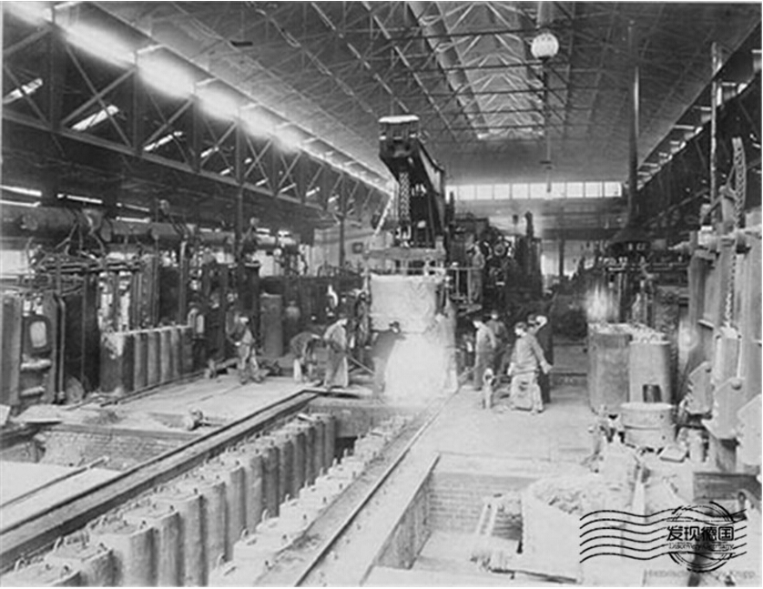 1811年,阿弗瑞德•克虏伯在埃森建立了德国历史上第一家铸钢厂,随后在鲁尔区各类炼钢厂纷纷建立。1850年普鲁士地区钢铁业的雇员数已多达13500人,产量突破了21万吨。
