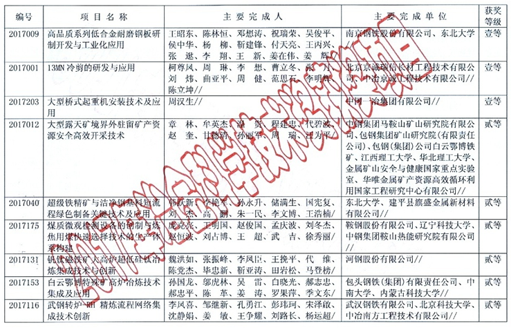 附:冶金科学技术奖公告