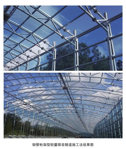 浦项钢铁公司开发的“钢管桁架型轻量隔音隧道施工法”采用STKT590、PosH690等高强度结构钢作为施工材料,2016年9月曾被韩国国土交通部认定为“施工新技术”,“材料-制作-设计-施工”的全流程都完成了质量认证。钢管桁架型结构将直线连接的若干个框架材料构成三角形或五角形,可以提高结构刚性,减少下垂现象的发生,与现有的H型钢框架施工法相比,可以减轻约53%的重量,节省约15%的施工费用,同时在质量和应用性方面都具有显著优势。