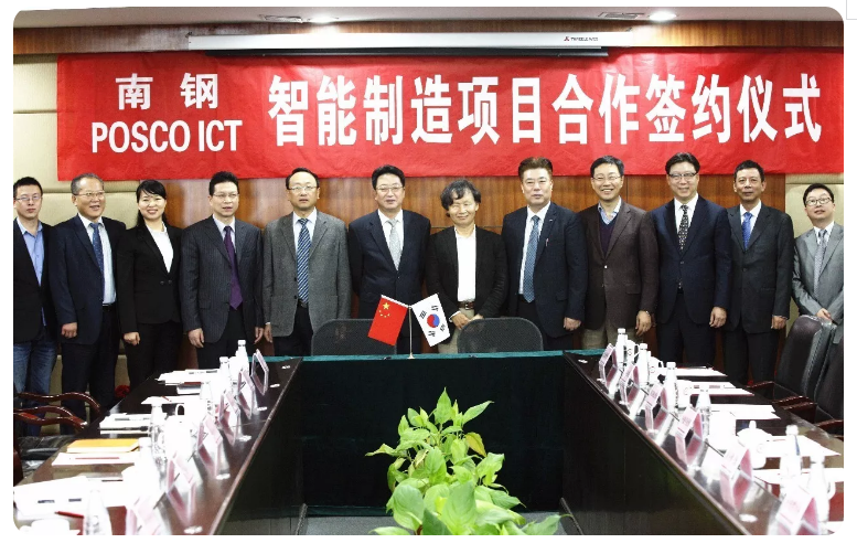 10月17日,南钢和浦项ICT智能制造项目合作签约仪式举行,双方签署了“宽厚板板坯自动化管理系统”“南京钢铁自动化及信息化咨询”两个项目的合同。公司领导黄一新、祝瑞荣、楚觉非及相关部室负责人和浦项ICT社长崔斗焕等参加。