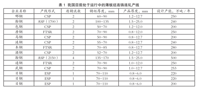 下面对我国主要的CSP产线的运行情况和存在的问题进行介绍。