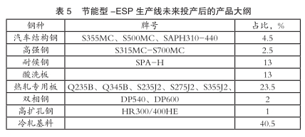 该生产线主要生产冷轧基板、一般结构钢、汽车用结构钢、耐候钢、热轧酸洗板、高强钢、双相钢等,产线投产后的产品大纲见表5。